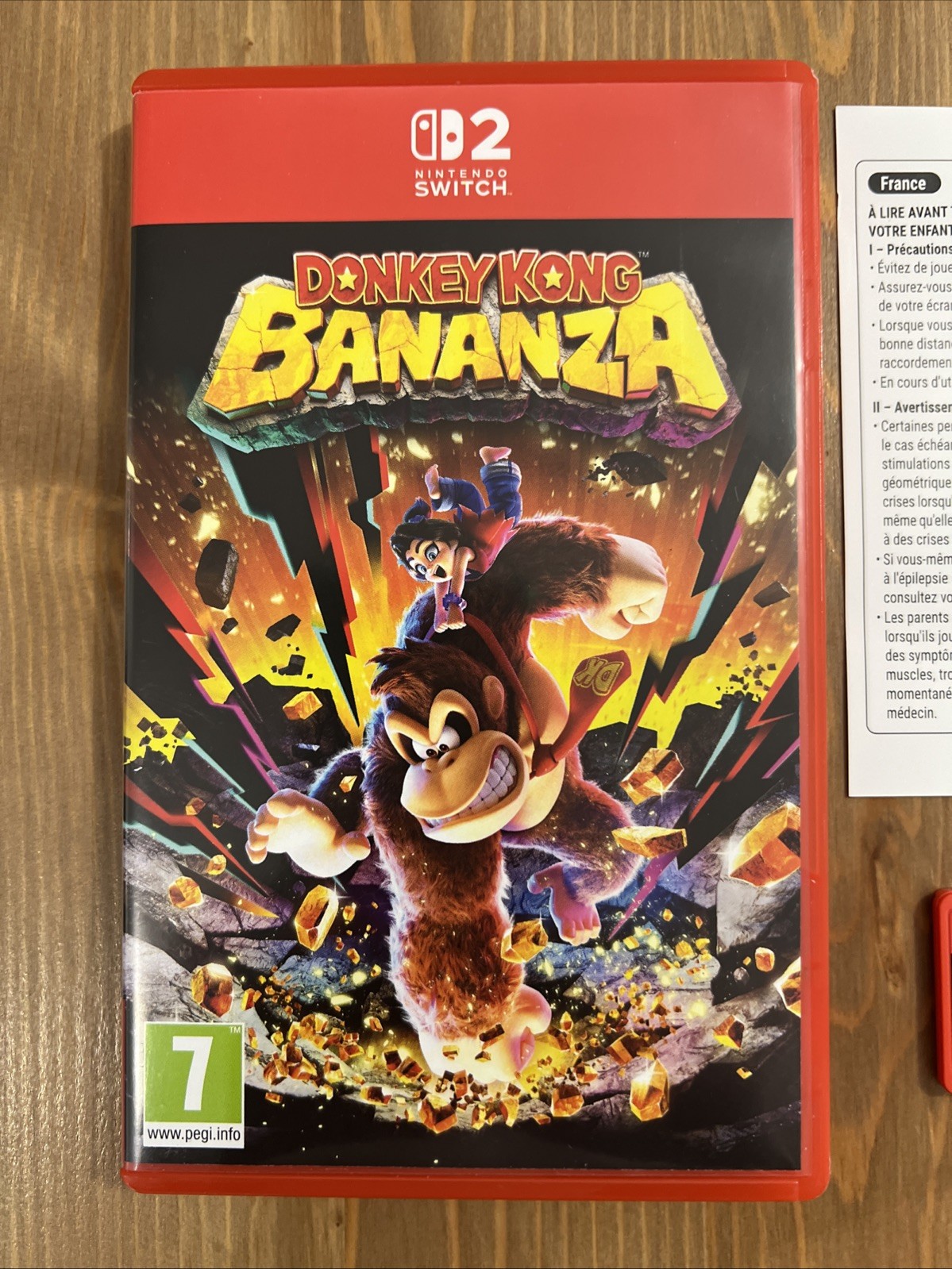 Un concentré d’action et de fun, Donkey Kong dans sa forme la plus explosive. J’ai acheté Donkey Kong Bananza dès sa sortie le 17 juillet 2025, et après plusieurs heures de jeu, je peux affirmer que c’est l’un des meilleurs titres récents de la Nintendo Switch 2. Si vous hésitez encore, voici un avis complet et objectif, avec tous les détails utiles :🎮 Gameplay : intuitif, rythmé, addictifLe gameplay est fluide et très dynamique. On retrouve un mix entre plates-formes, exploration et démolition, avec un vrai sentiment de puissance quand on incarne Donkey Kong.Vous pouvez grimper, bondir, casser des murs, arracher des éléments du décor, et même les lancer sur les ennemis.Chaque niveau propose des mécaniques nouvelles : phases de destruction, plateformes mobiles, énigmes environnementales…Le jeu est progressif dans sa difficulté : très accessible au début, puis plus corsé pour les joueurs aguerris. Parfait pour tous les âges à partir de 7 ans.👨👩👧👦 Multijoueur : convivial et bien penséLe mode coopératif local est un vrai plus ! Vous pouvez jouer à 2 en même temps sur la même console, chacun avec un Joy-Con. Idéal pour partager de bons moments en famille ou entre amis.Il y a également des défis chronométrés en duo, avec des classements, ce qui apporte de la rejouabilité.🌍 Ambiance et graphismesLe style visuel est très cartoon, riche en couleurs et en animations. L’environnement est ultra-vivant : jungle tropicale, mines, plages volcaniques, temples anciens, etc.Chaque monde a sa propre ambiance et des musiques énergiques, avec des remix modernes de thèmes classiques de Donkey Kong, un réel plaisir pour les fans nostalgiques.🍌 Durée de vie et contenuEnviron 10 à 15 heures pour terminer l’histoire principale.De nombreux collectibles cachés dans chaque niveau (bananes dorées, objets secrets).Des défis secondaires et niveaux bonus bien corsés, pour ceux qui aiment tout compléter à 100 %.✅ Points forts :Action ultra-fluide et funUnivers riche et bourré de surprisesMode coop local très bien intégréTrès bonne durée de vie pour un jeu de plateformeOptimisé pour la Switch 2 (zéro ralentissement)⚠️ À savoir :– Pas de mode en ligne pour le moment– Peut être trop facile pour les joueurs très expérimentés, sauf en mode expert💬 Conclusion :Donkey Kong Bananza est un excellent jeu d’action-plateforme, accessible, mais profond, avec une ambiance explosive et une vraie personnalité. Il s’adresse autant aux enfants qu’aux adultes fans de la licence. Si vous avez une Switch 2 et que vous aimez les jeux dynamiques, foncez les yeux fermés !