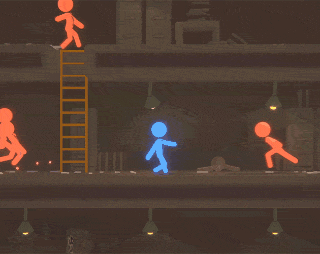 Frappez, donnez des coups de pied, tranchez, découpez, brûlez, explosez, agrafez, lancez des boules de feu, marteau-piqueur et tronçonneuse pour gravir les échelons de l’entreprise en solo ou avec un « ami » dans un environnement de travail vraiment hostile. Et n’oubliez pas : chaque stickman rouge que vous vainquez est un stickman rouge mort qui vous rapproche d’une promotion !